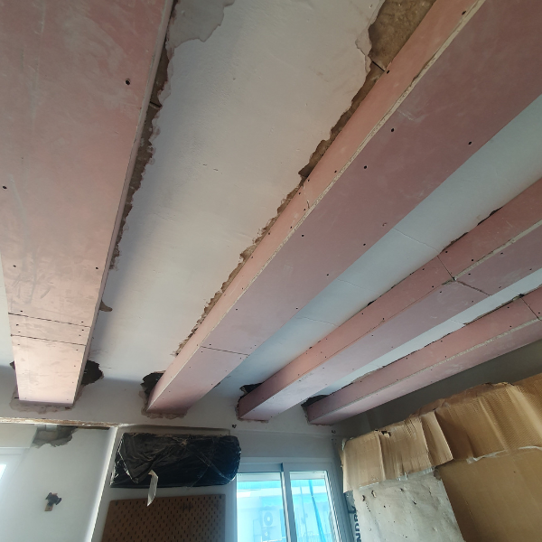 cocinas y aseos, pero también en la zonas afectadas en contacto con fachada y balcones, donde por las sucesivas filtraciones desde el exterior del agua de lluvia, se detectaron lesiones muy graves que incluso requirieron el apuntalamiento temporal de la estructura para garantizar la seguridad estructural de los residentes.